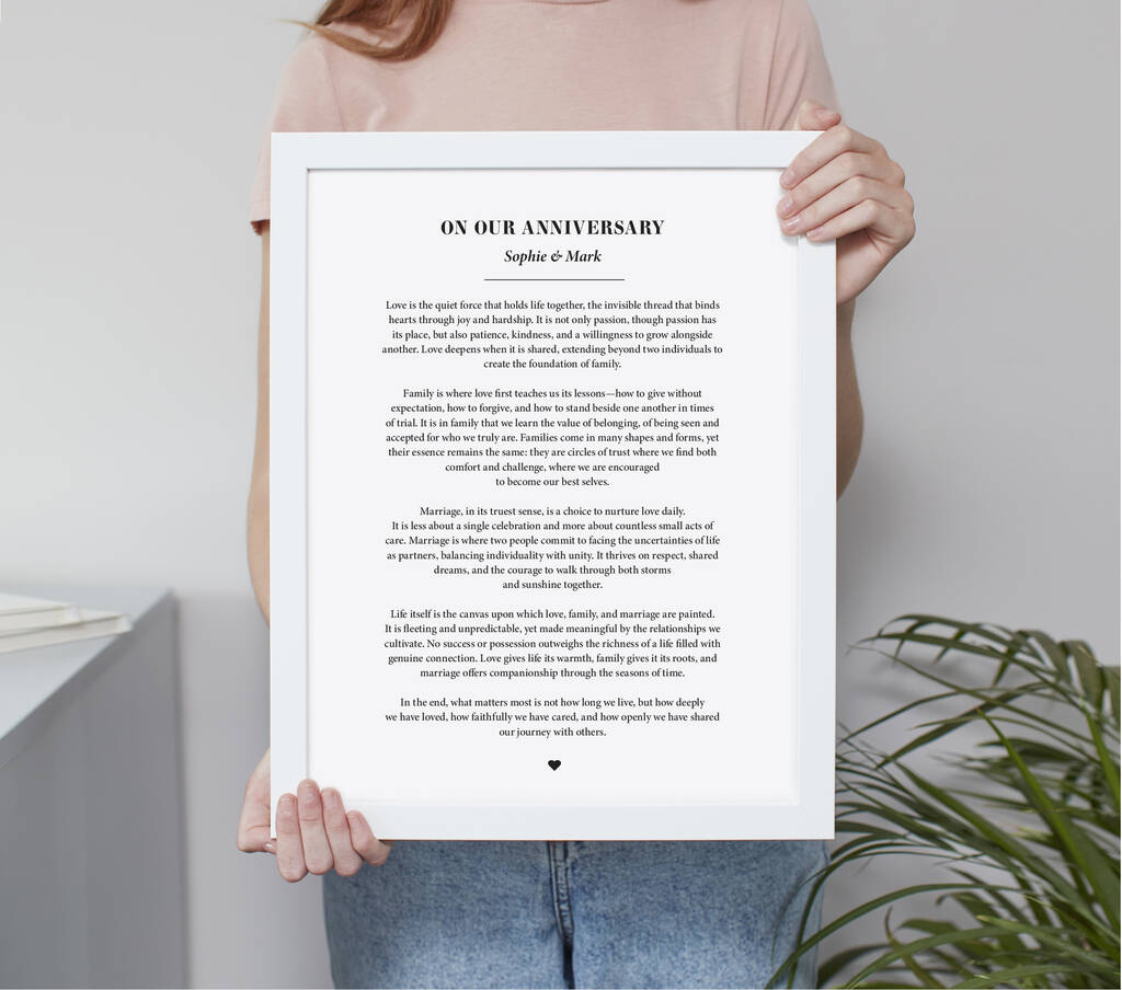 Celebrate the words that matter most with a personalised print that’s as unique as your love story – a truly meaningful gift they’ll treasure forever.