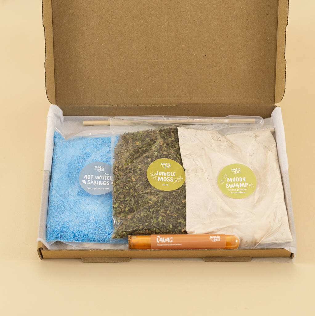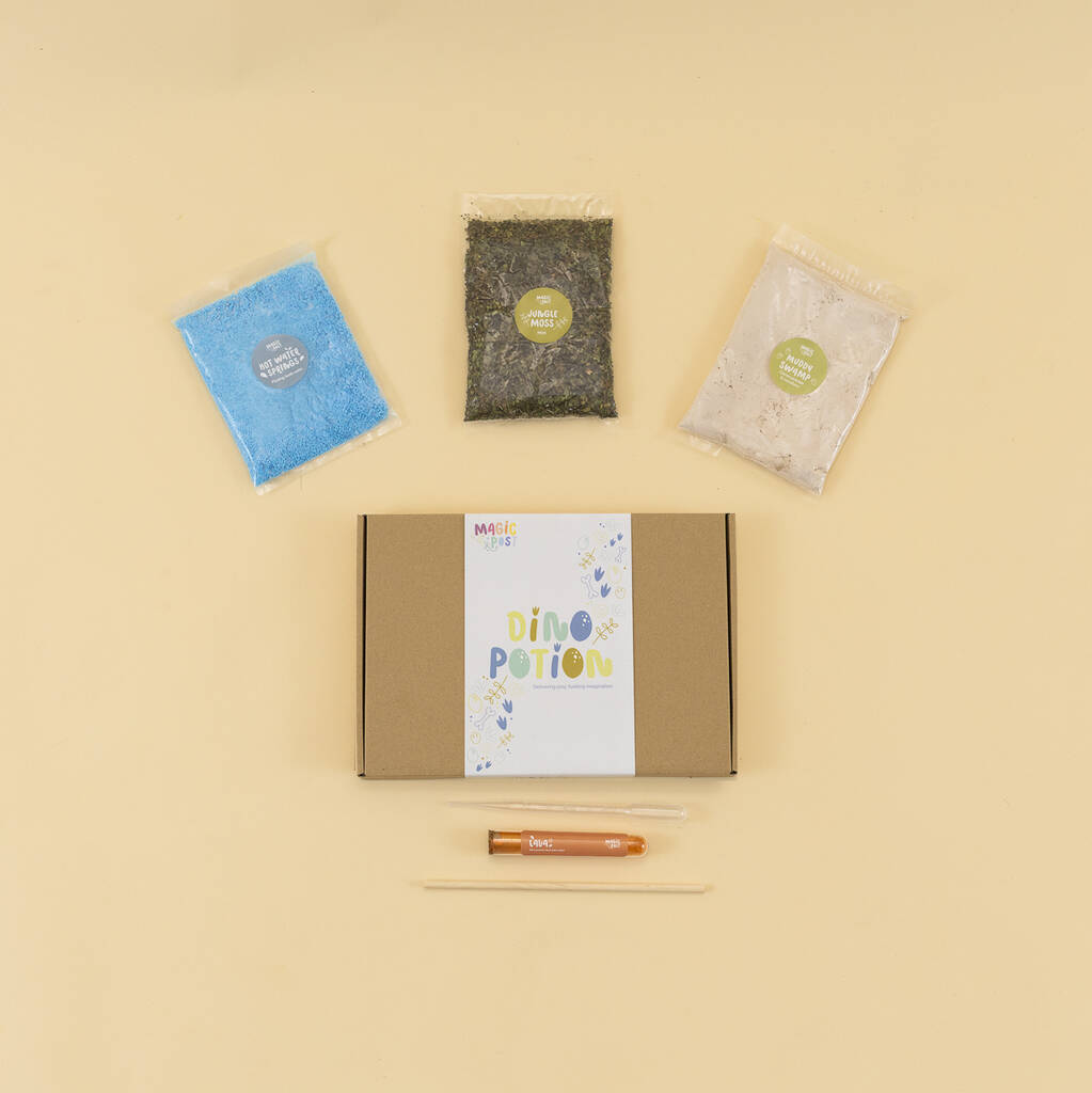 Our mini Dino-inspired potion kit is the perfect introduction to potion play. It contains everything you need to engage your child to create, imagine and explore. With ingredients that foam, gloop and glisten, it will bring your child joy and excitement and connect them to their inner magic.