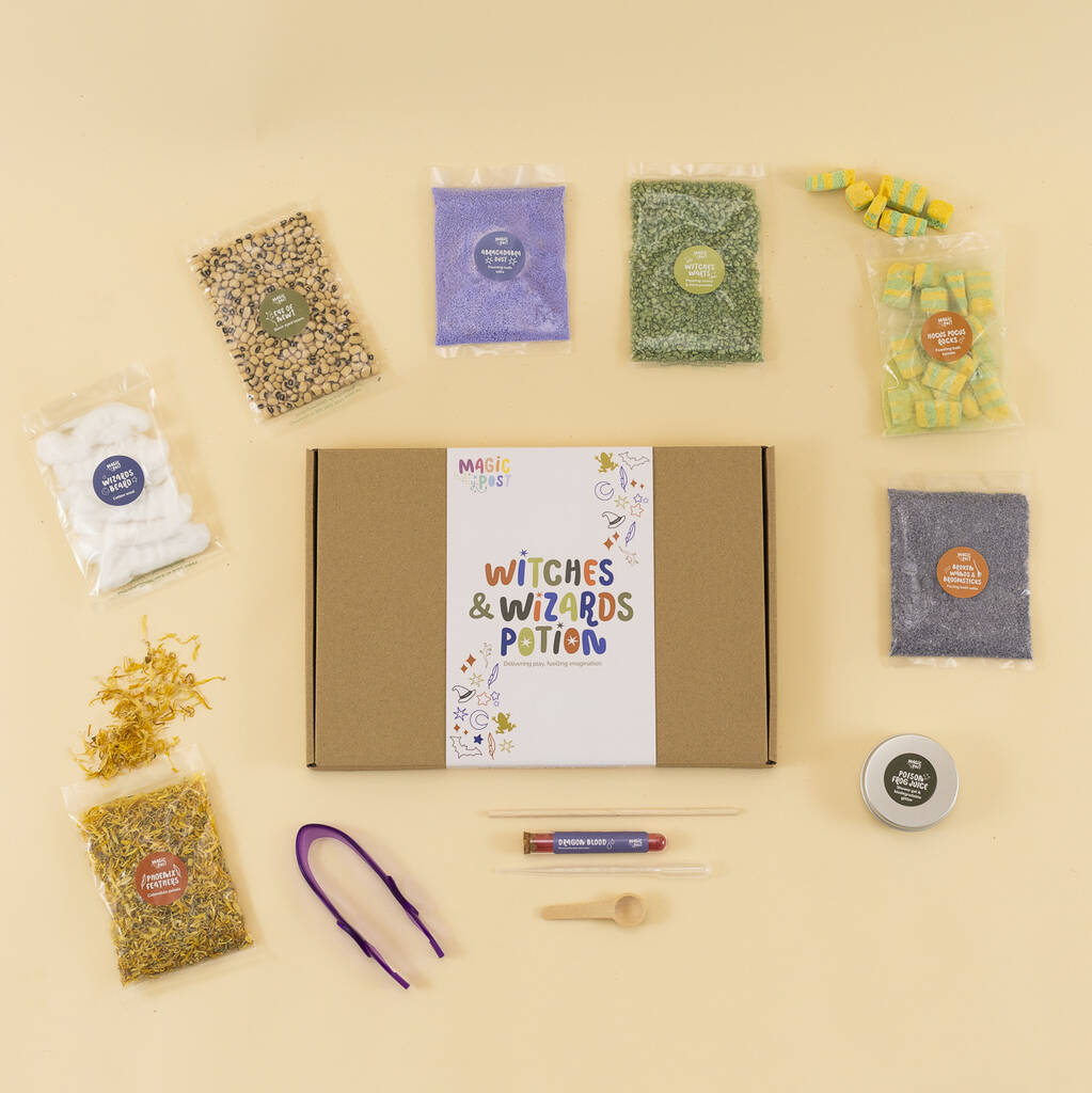 Within this captivating kit, your mini witches and wizards will have hours of fun creating spine-chilling spells using their magic to mix together ghoulish ingredients and eerie textures.