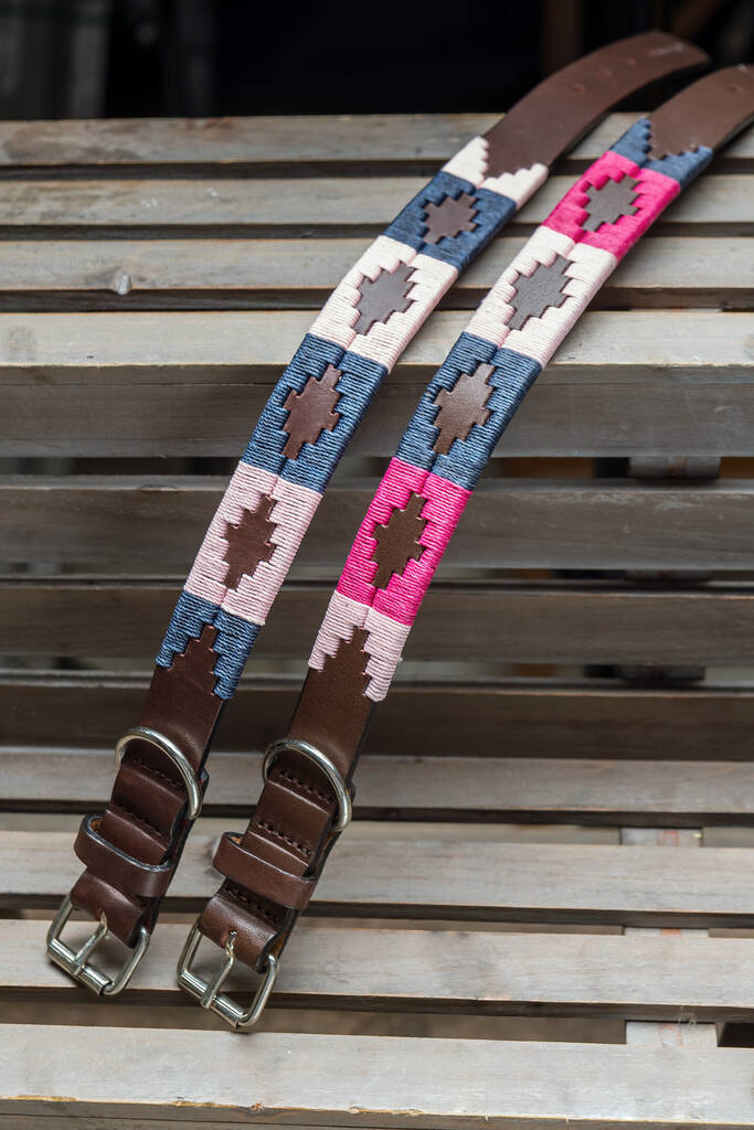 This Hermoso dog collar is the perfect treat for your pet and to complete the look, pampeano also has a matching dog lead available with the same hand-stitched pink and navy design and made from the same premium quality Argentinian leather. optional personalisation on the lead is available of up to ten letters in blind emboss for a subtle, more personal touch. You may also recognise this dog collar design from our well known and much loved Hermoso pampeano belt.