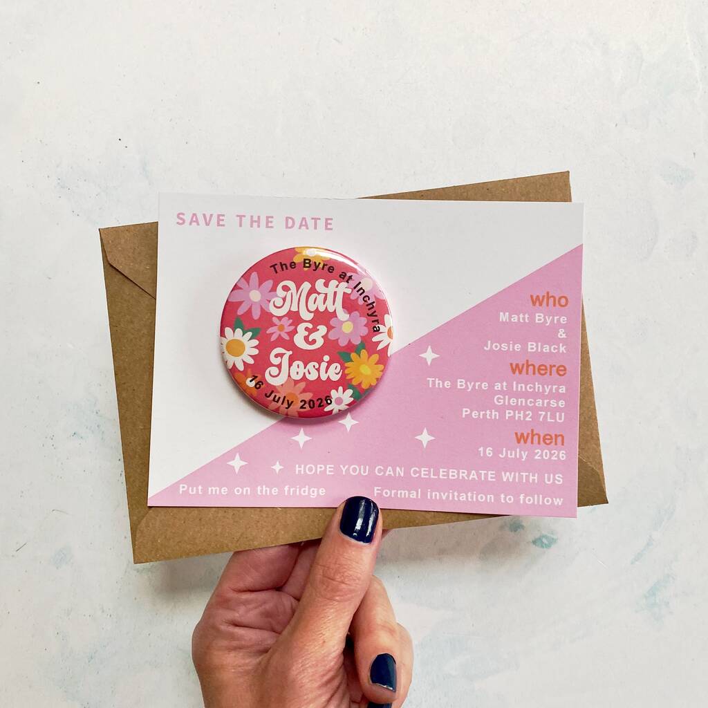 Colourful, Fun, Floral Alternative Wedding Save The Date Magnet