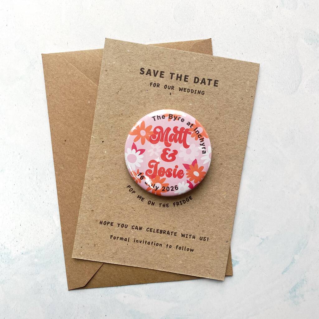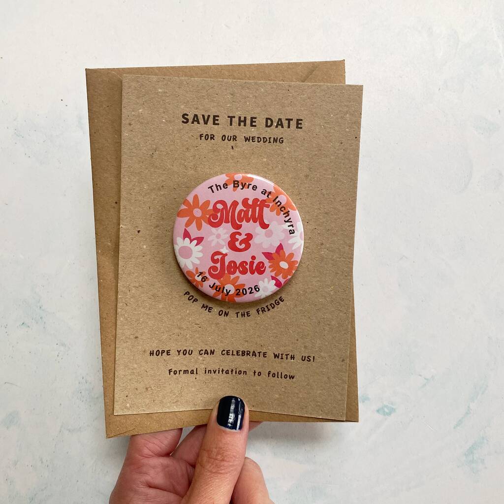 Fun Colourful Floral Save The Date Wedding Magnet
