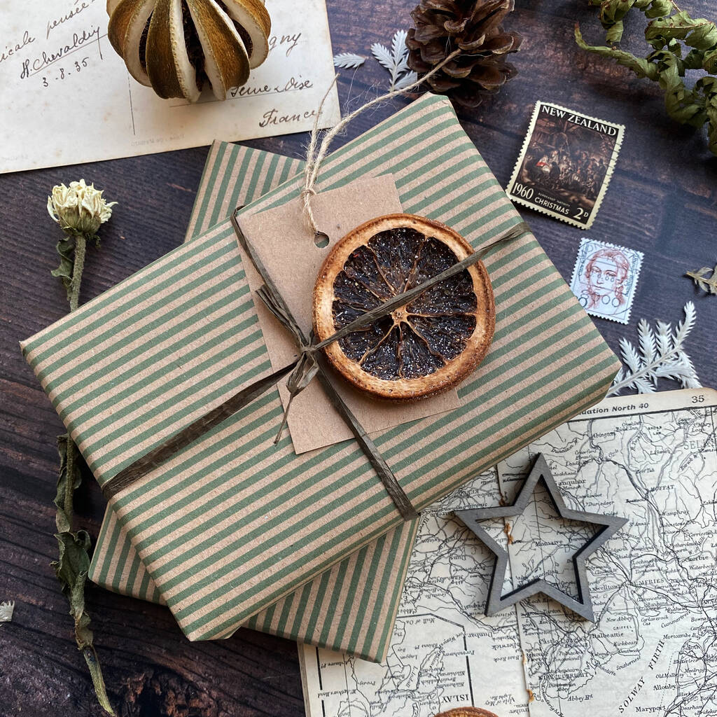 Green Stripe Paper Fibre Wrapping Paper