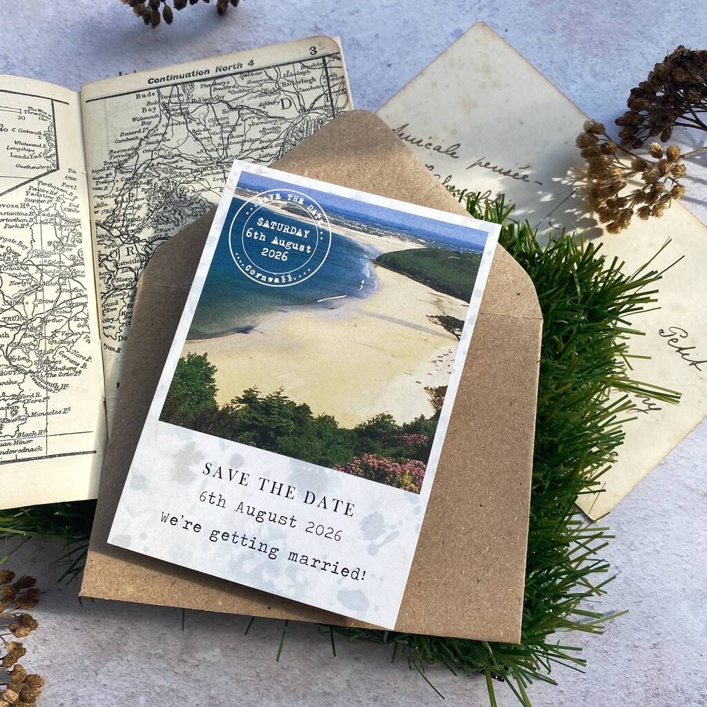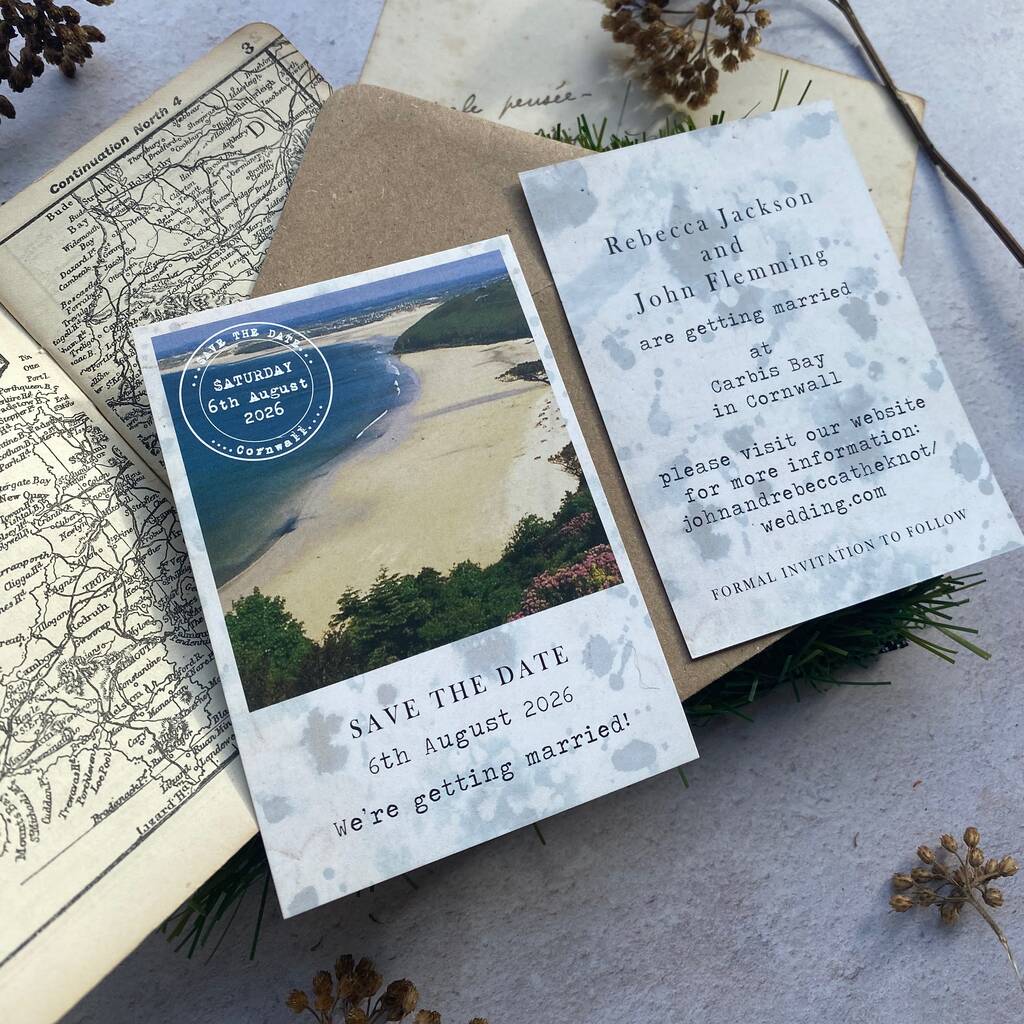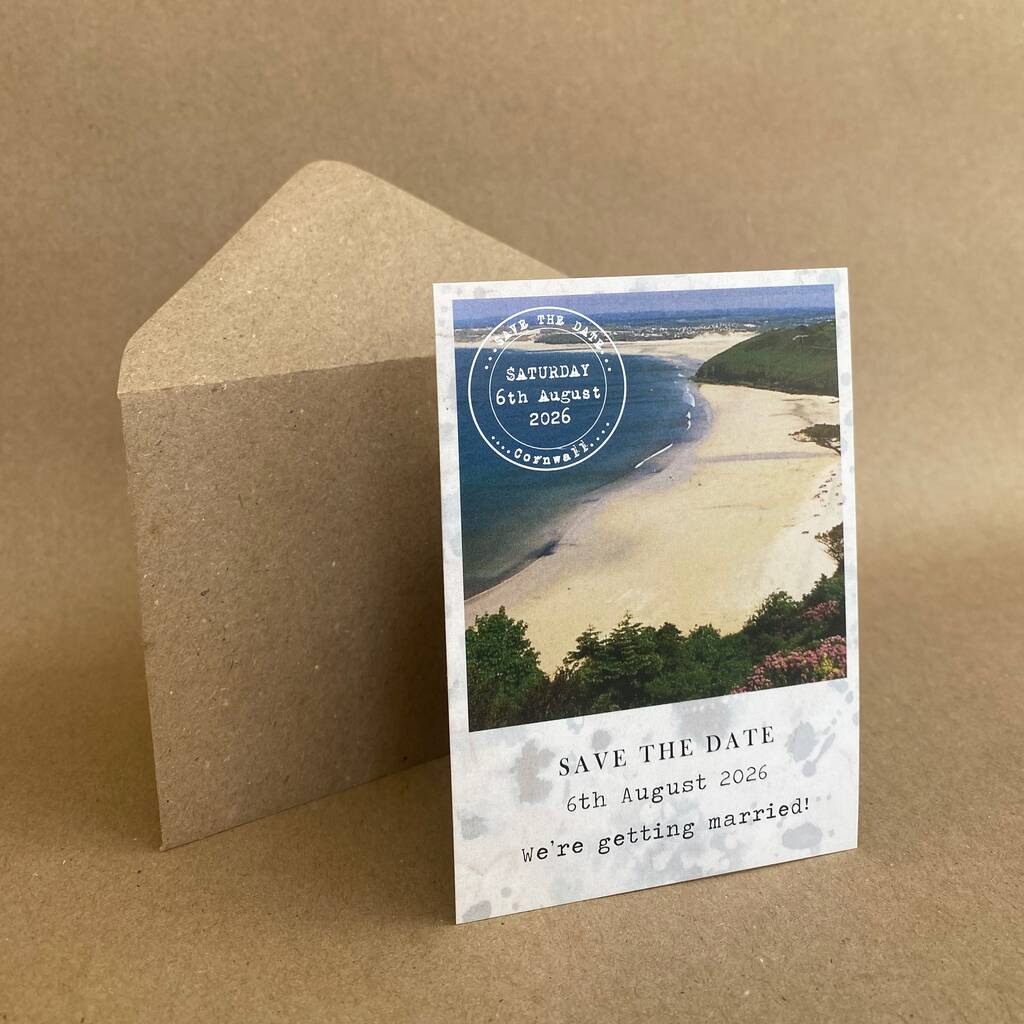 These polaroid style photographic save the dates are a lovely personal way to introduce your wedding. The photo on the front of these save the dates will be changed to your own, ideas could be - proposal photo, a favouirte photo or venue photo.