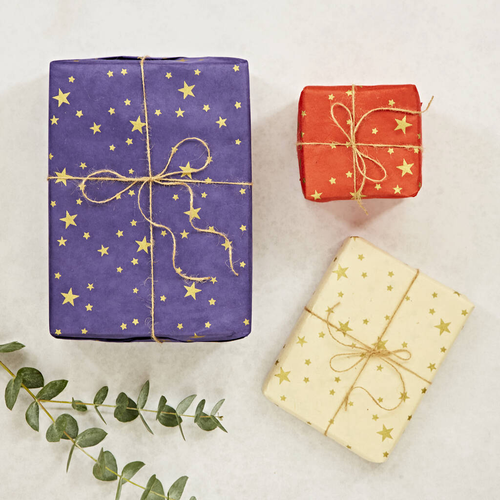 Add gift wrapping to your order, and we’ll wrap your gift in our highly sustainable Lokta paper. Choose from 3 festive colours, each with a handprinted metallic gold pattern, and tied in sustainable jute string. The thick, luxurious texture of the handmade paper makes it easy to reuse many times.