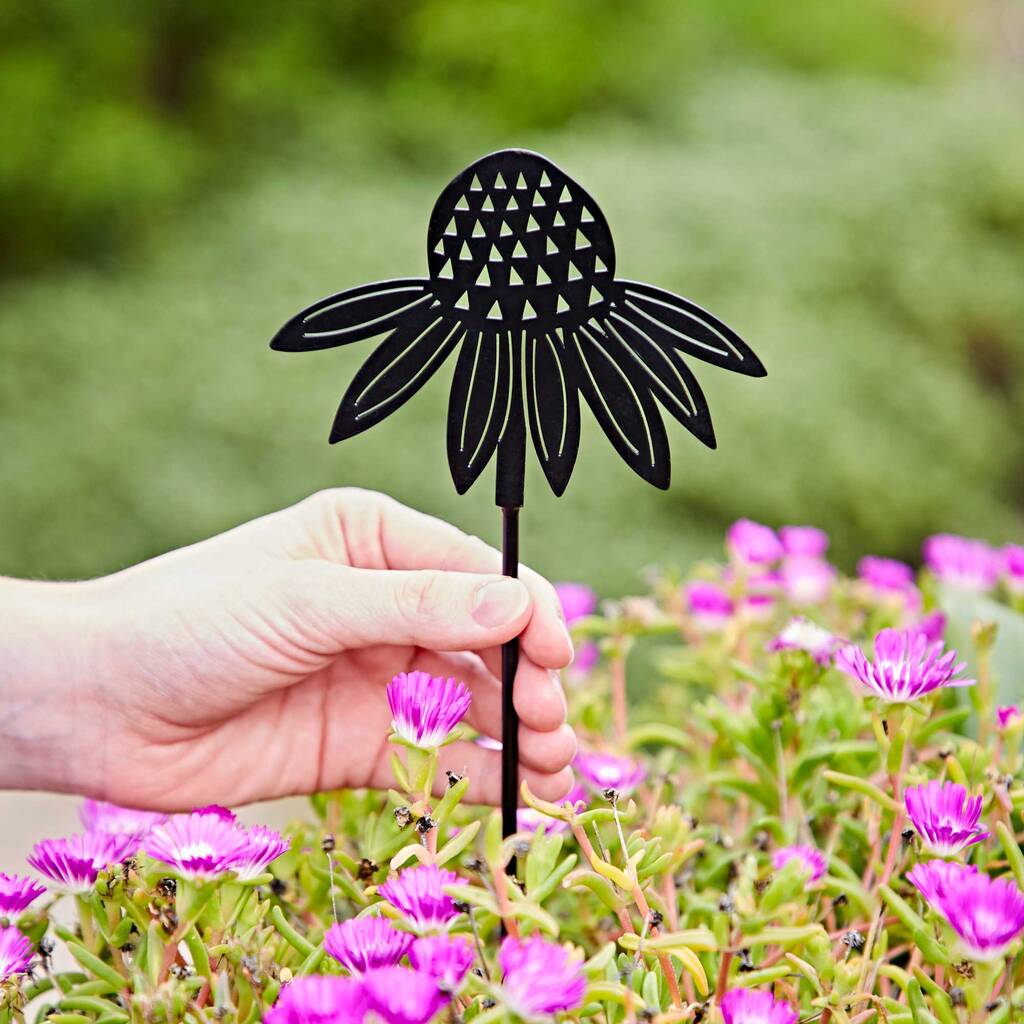 This beautiful echinacea-inspired silhouette stake captures the delicate form of the flower in bloom, and has been lovingly made by skilled artisans using recycled metal.