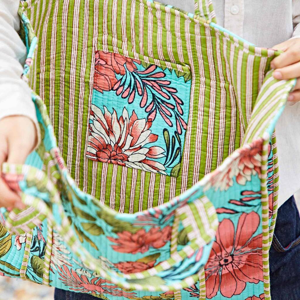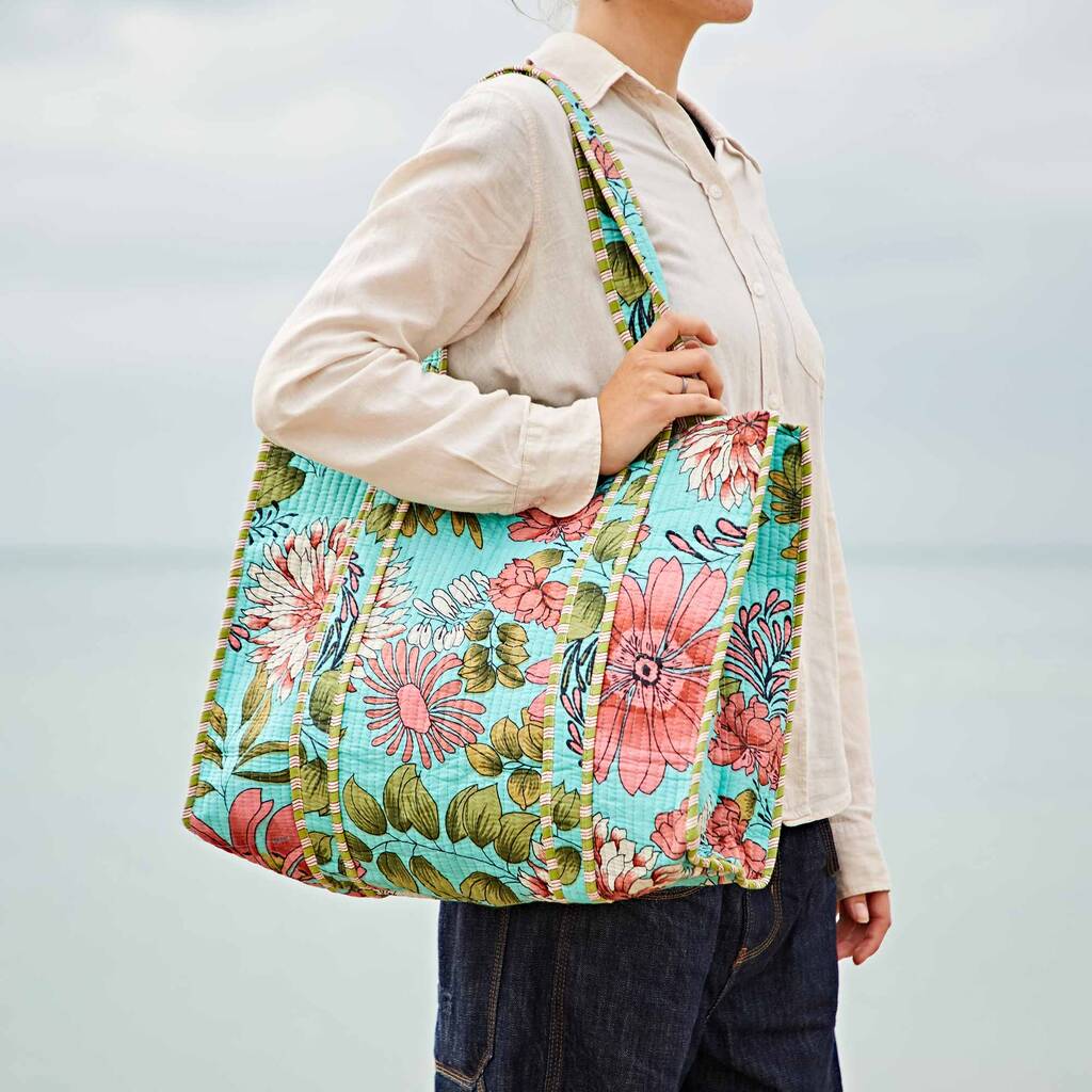 Whether you're heading to the beach, shops, office or off on a weekend escape, unleash your botanical side with our beautifully handcrafted quilted tote.