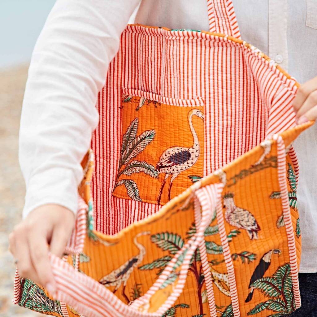 Lovingly handmade by skilled artisans in India, each tote is crafted from 100% natural cotton and block-printed using traditional techniques passed down through generations. Every bag is sewn in small batches, making each one truly one of a kind.