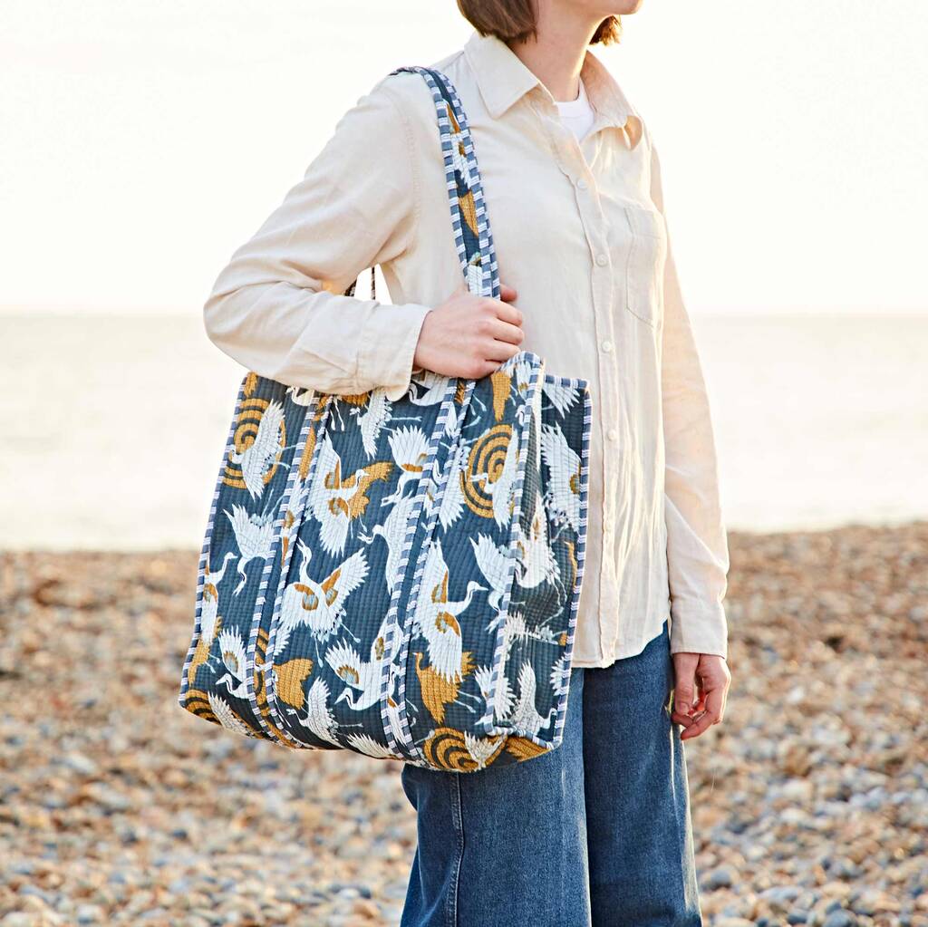 • Reversible Stork Print Quilted Cotton Tote Bag, thumbnail 1 of 3