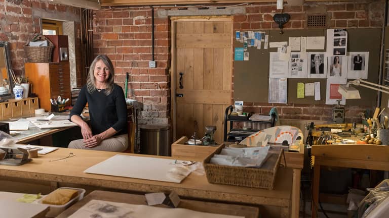 As both a jeweller and printmaker I am visually inspired by vintage wallpaper, botanical prints, garden design and these constantly inform my work. I work directly with the materials, using traditional skills to experiment and explore the paper surfaces and cut templates to imprint the metal; one strong, the other delicate, and always beautiful.