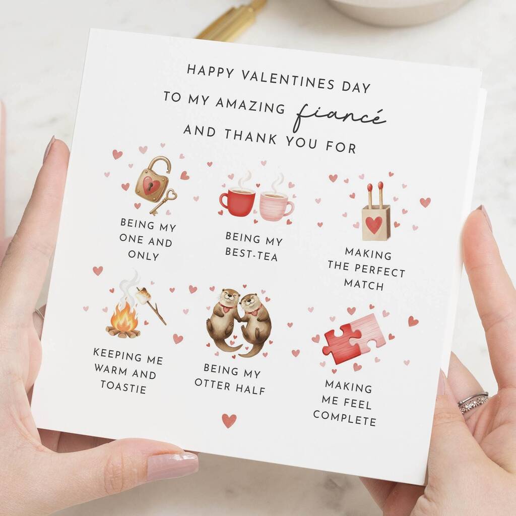 Funny Puns Valentines Card With Otters For Fiance