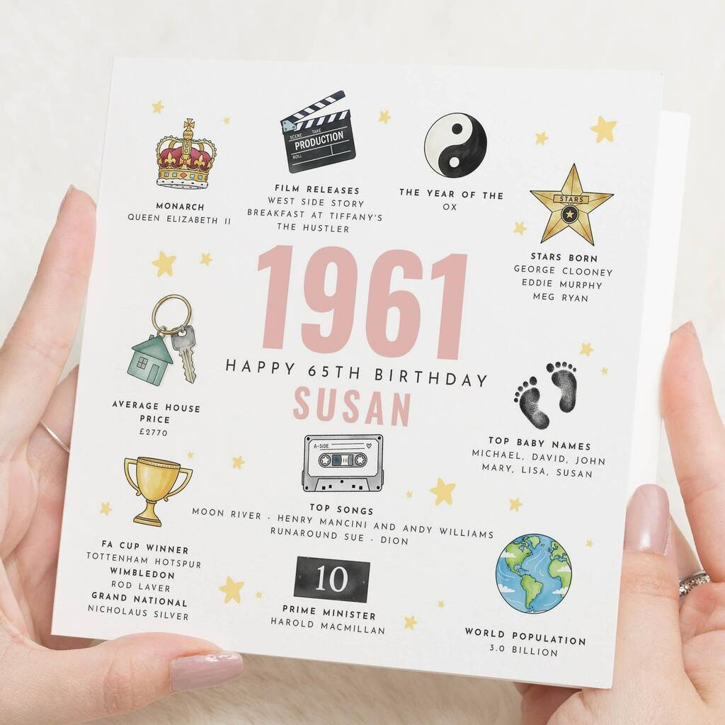 Personalised 1961 65th Milestone Card For Mum Or Friend