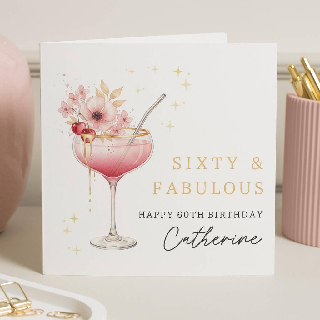 Personalised 60th Birthday Card For Her Floral Cocktail