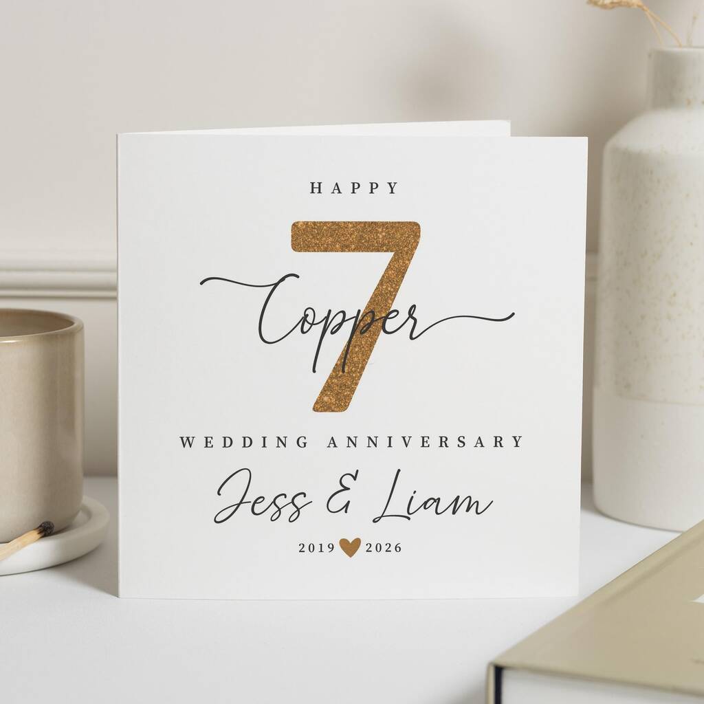 Personalised 7th Copper Anniversary Card For Couple