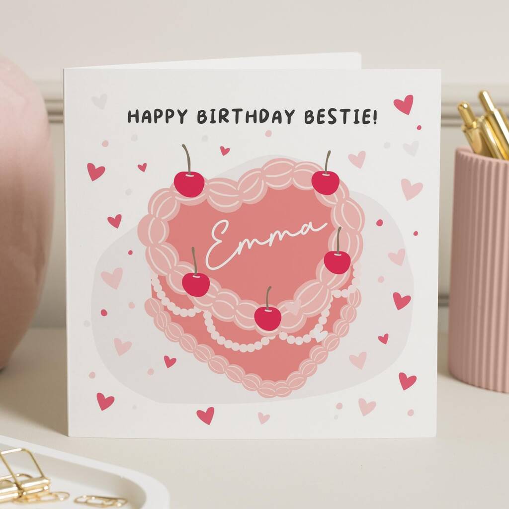 Personalised Best Friend Heart Cake Birthday Card