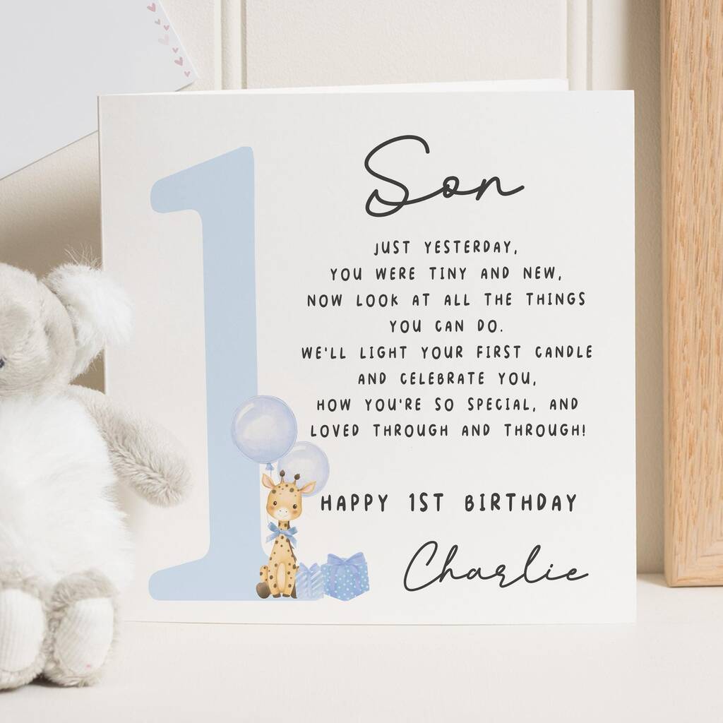 Personalised Blue 1st Birthday Card For Son Or Grandson
