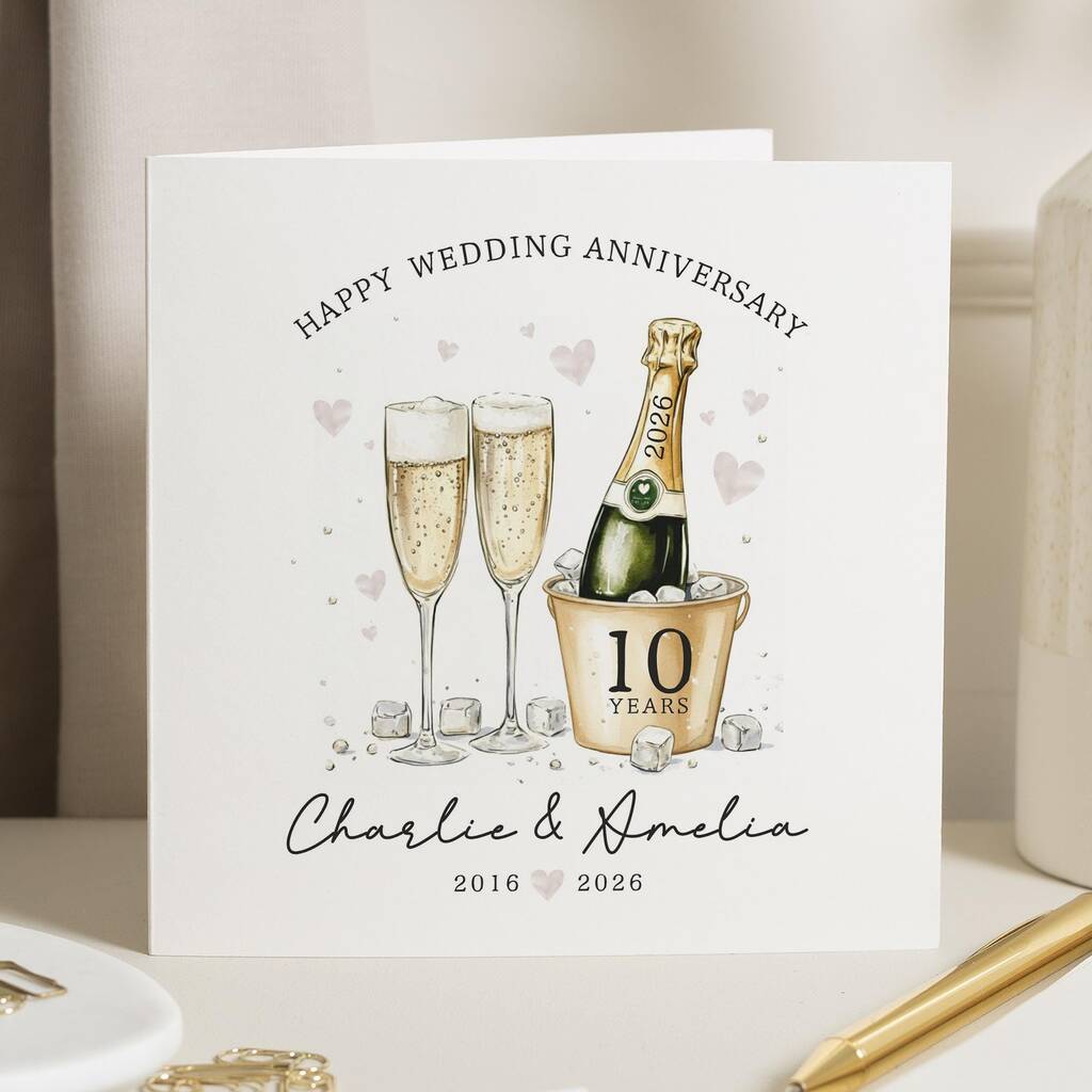 Personalised Champagne 10th Anniversary Card