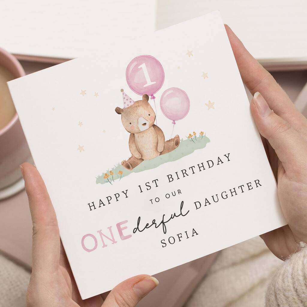 Personalised Cute Bear 1st Birthday Card For Daughter