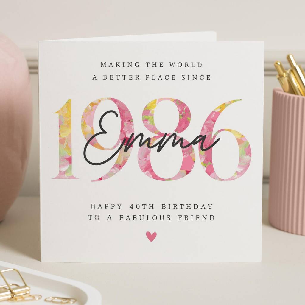 Personalised Floral 40th Birthday Card For Friend 1986