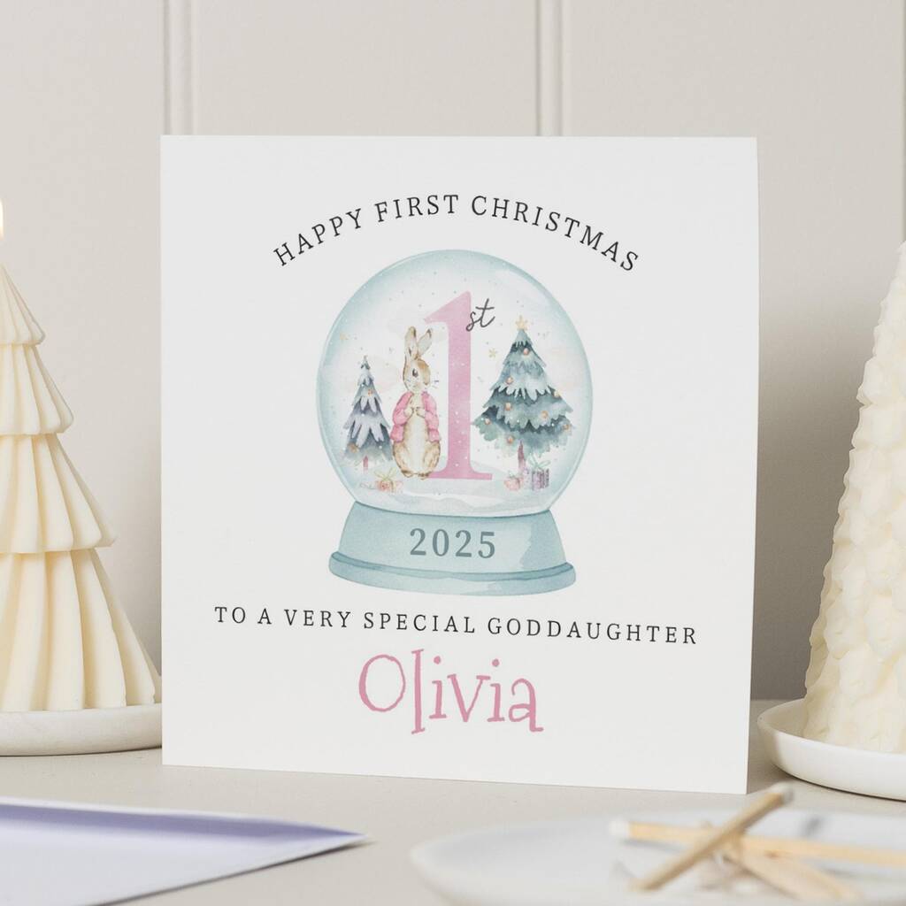 Personalised Goddaughter 1st Christmas Bunny Card