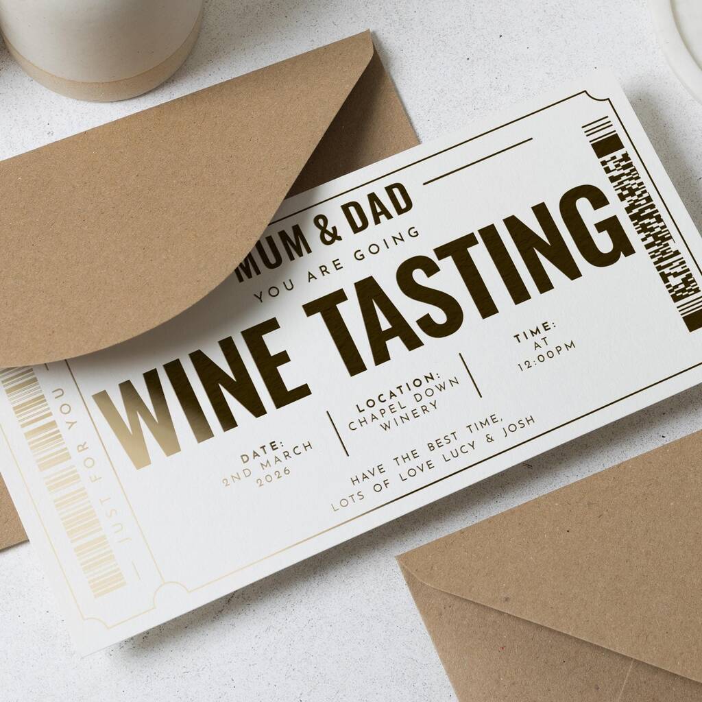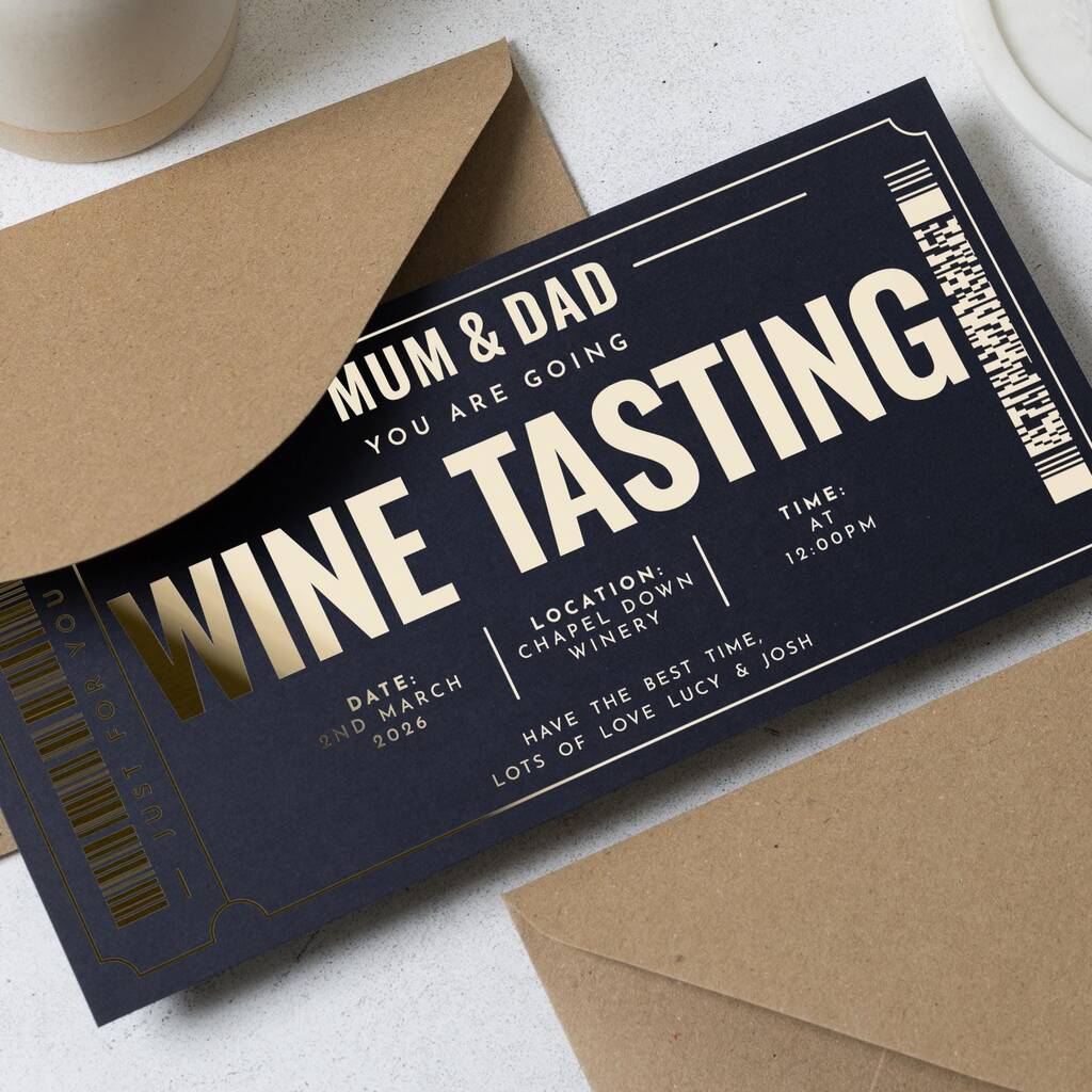 Personalised Gold Foil Wine Tasting Voucher For Parents