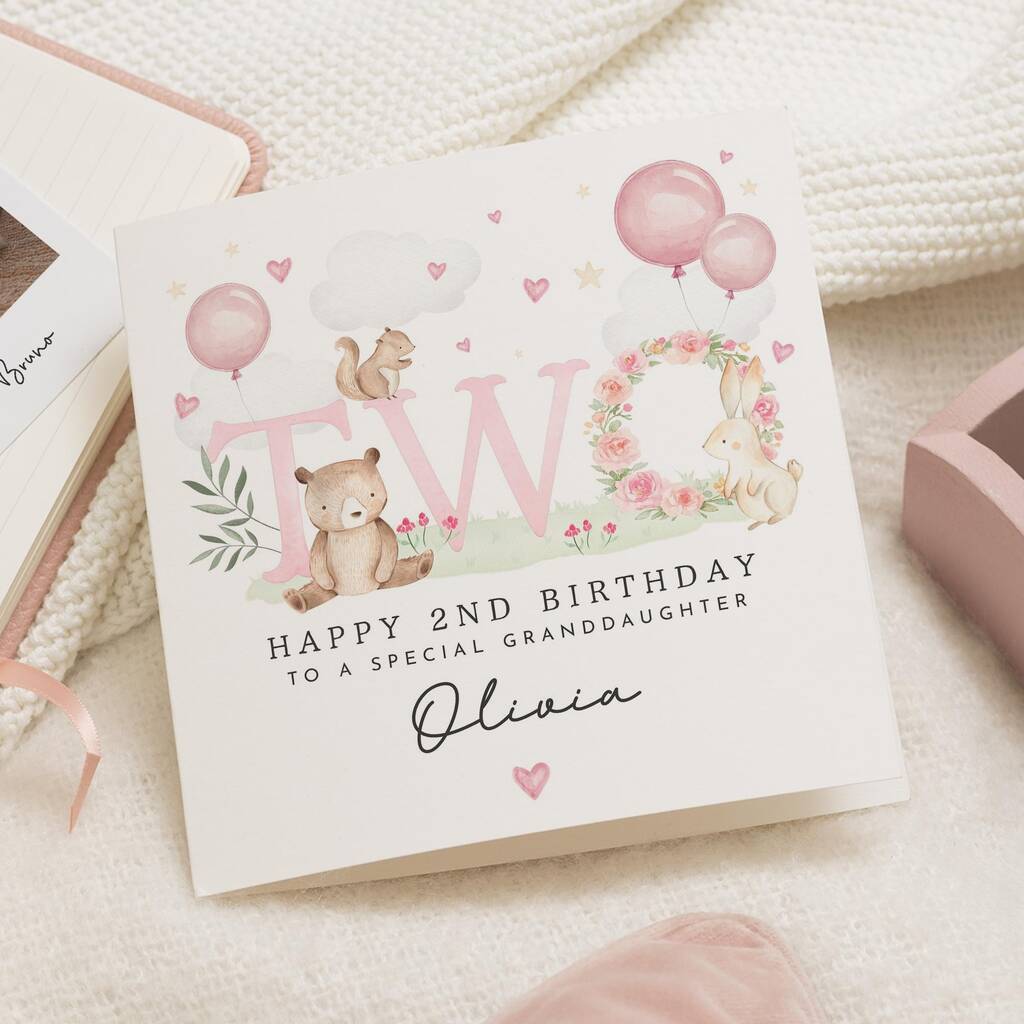 Personalised Granddaughter 2nd Birthday Woodland Card