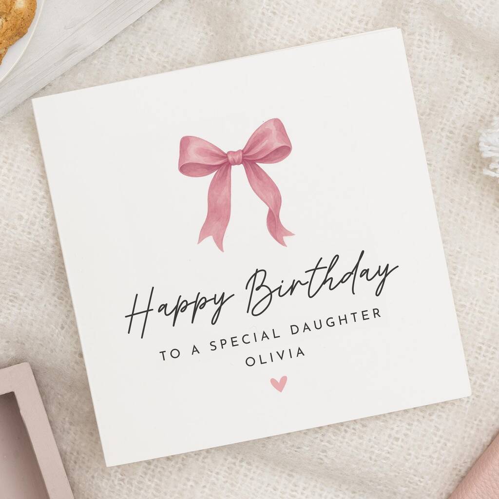 Personalised Pink Bow Birthday Card For Daughter