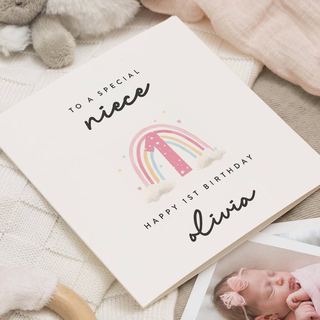 Personalised Rainbow 1st Birthday Card For Niece