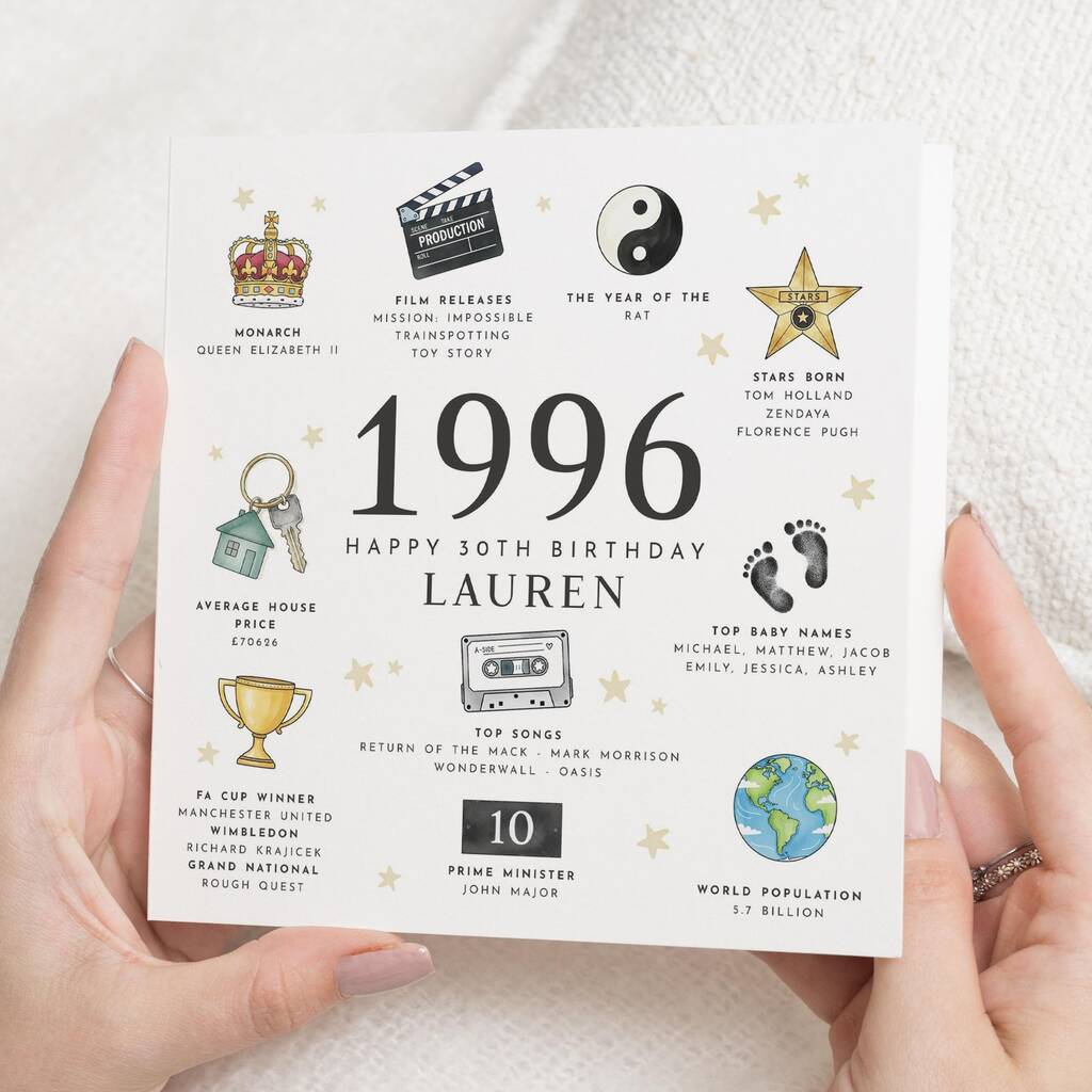 Personalised Retro 1996 30th Birthday Card For Her