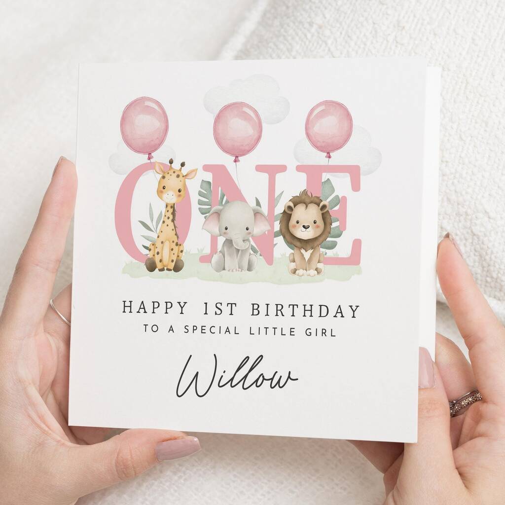 Personalised Safari 1st Birthday Card For Daughter