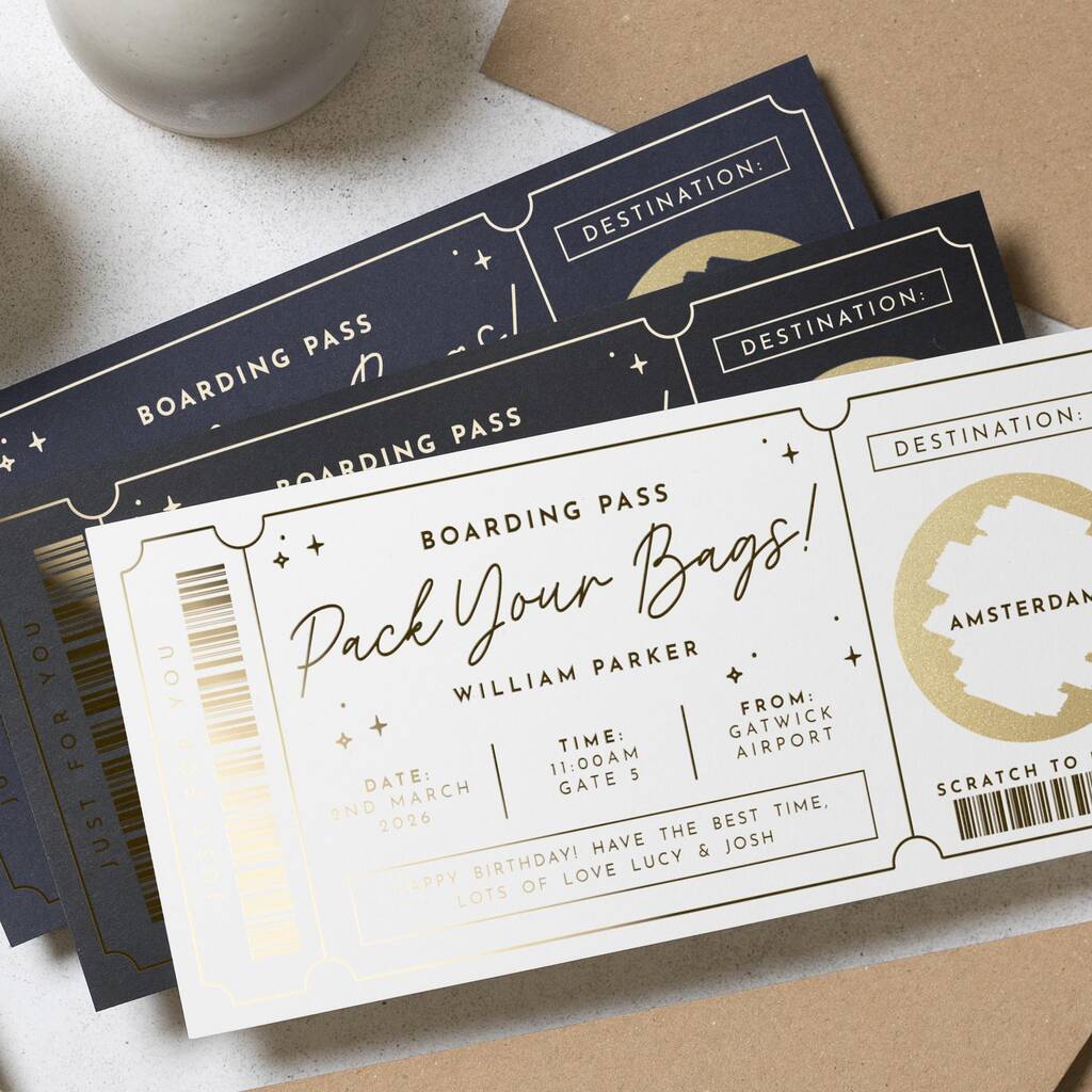 Personalised Scratch Reveal Boarding Pass Gift Voucher