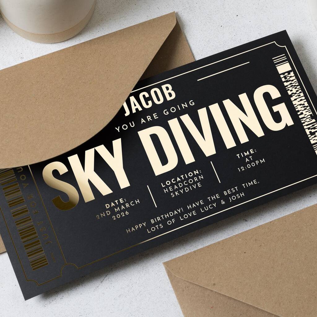 Personalised Skydiving Birthday Gift Voucher