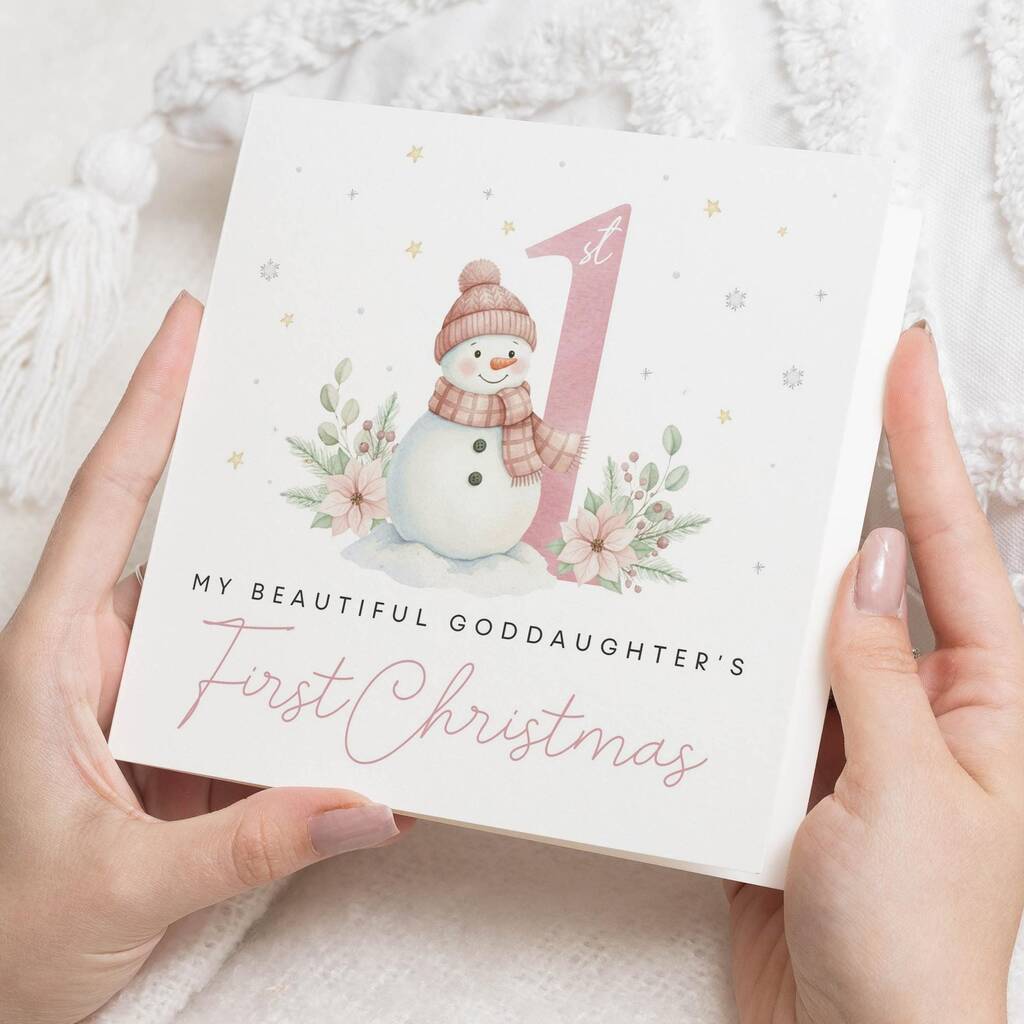 Personalised Snowman 1st Christmas Card For Goddaughter