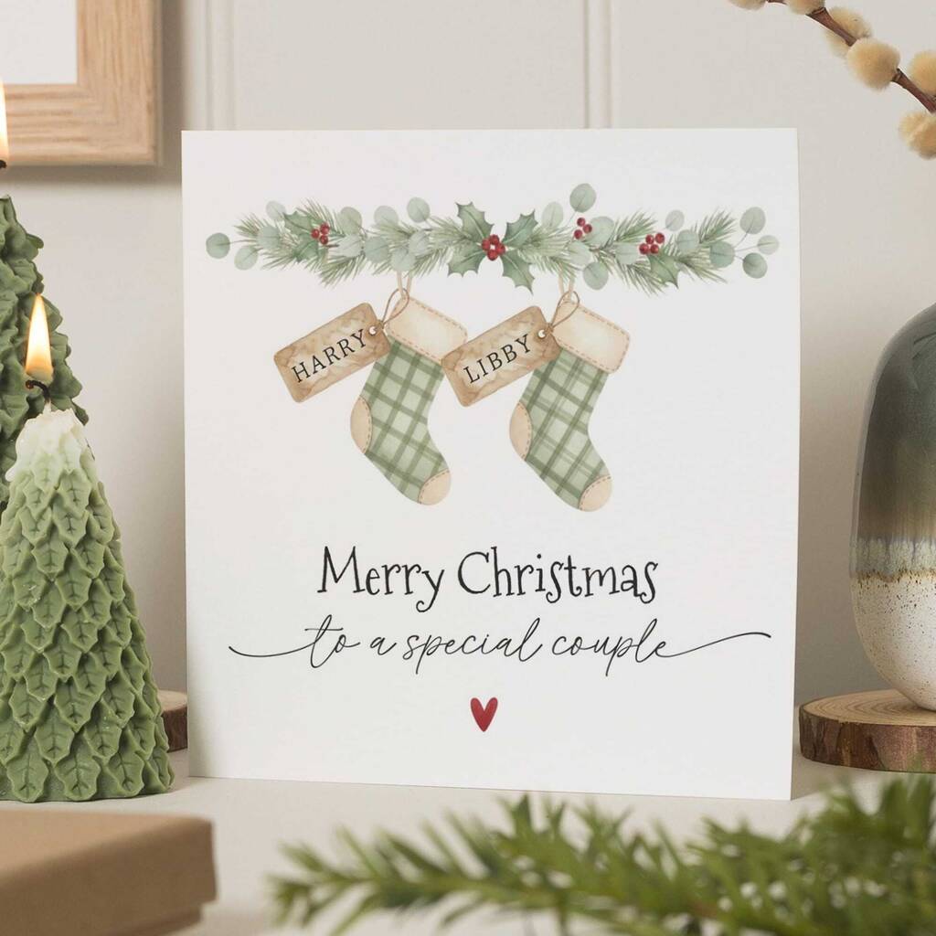 Personalised Stocking Christmas Card For Special Couple