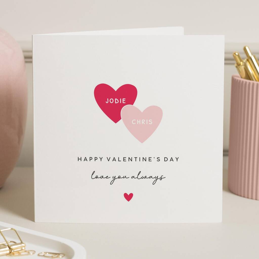 Valentines Card With Two Hearts For Couple Personalised