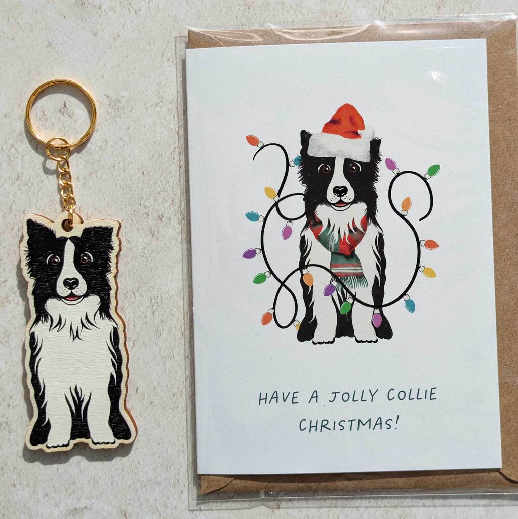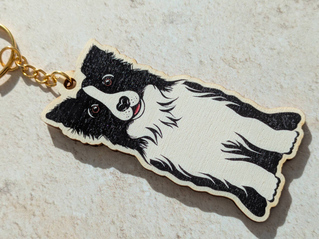 Collie Dog Wooden Keyring With Optional Christmas Card