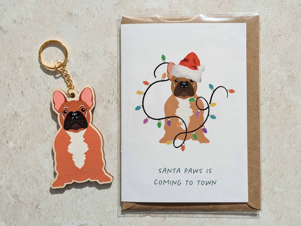 French Bulldog Wooden Keyring With Optional Christmas Card