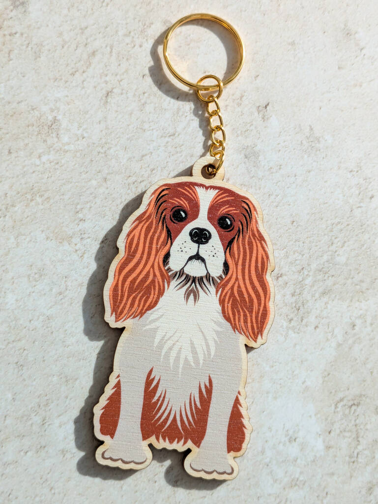 King Charles Spaniel Wooden Keyring With Optional Christmas Card