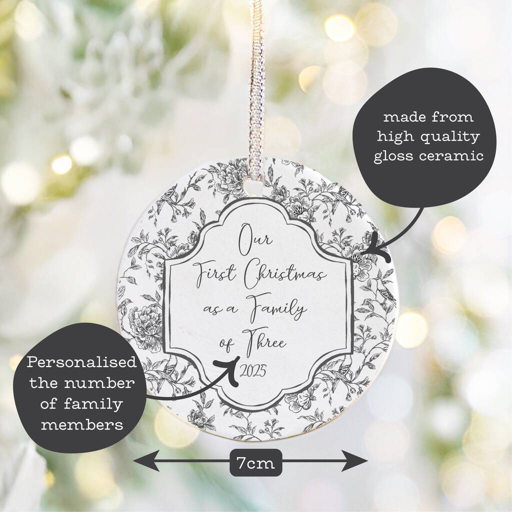 First Christmas As A Family Of Ceramic Floral Tree Decoration