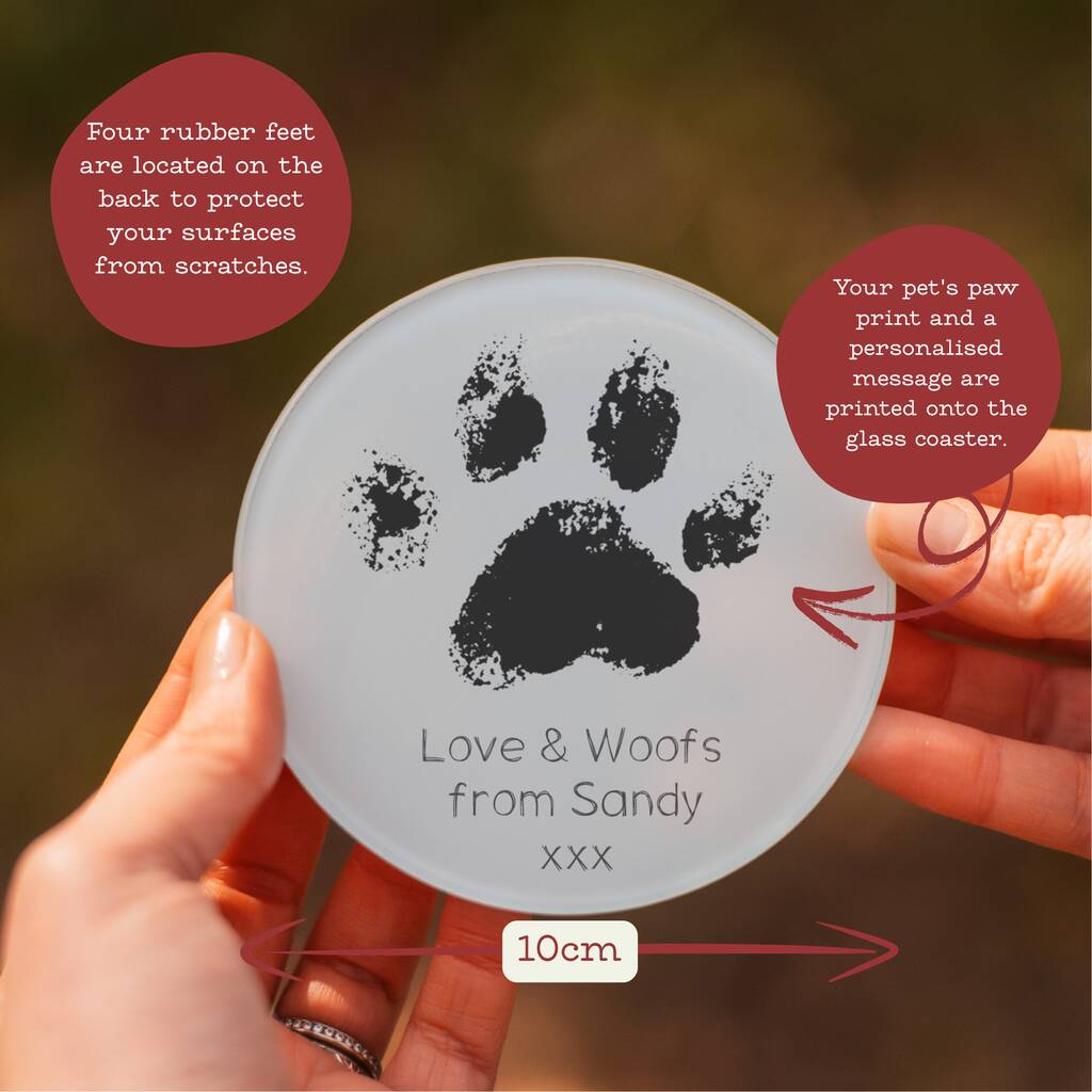 Personalised Pet Paw Print And Message Glass Drink Coaster