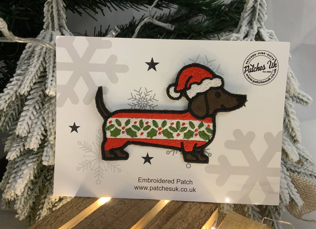 Christmas Dachshund Dog Embroidered Fabric Patch