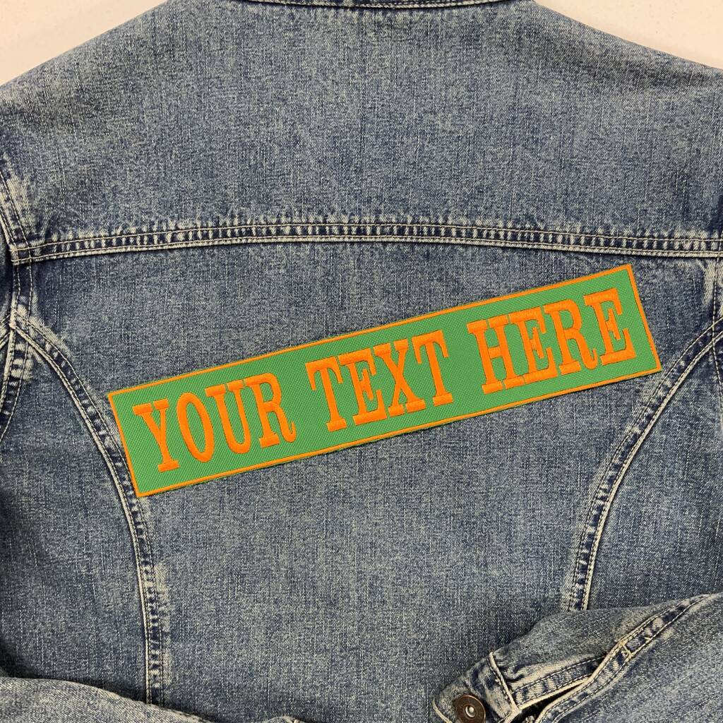 Large 29cm Straight One Line Rectangle Personalised Text Embroidered Fabric Iron On Patch