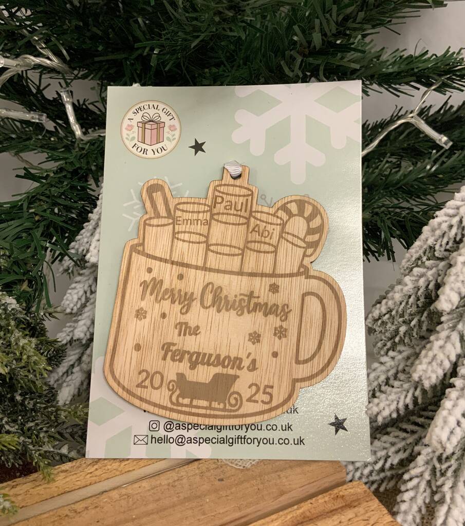 Personalised Family Friends Christmas Hot Chocolate Wooden Hanging Decoration By A Special Gift For You