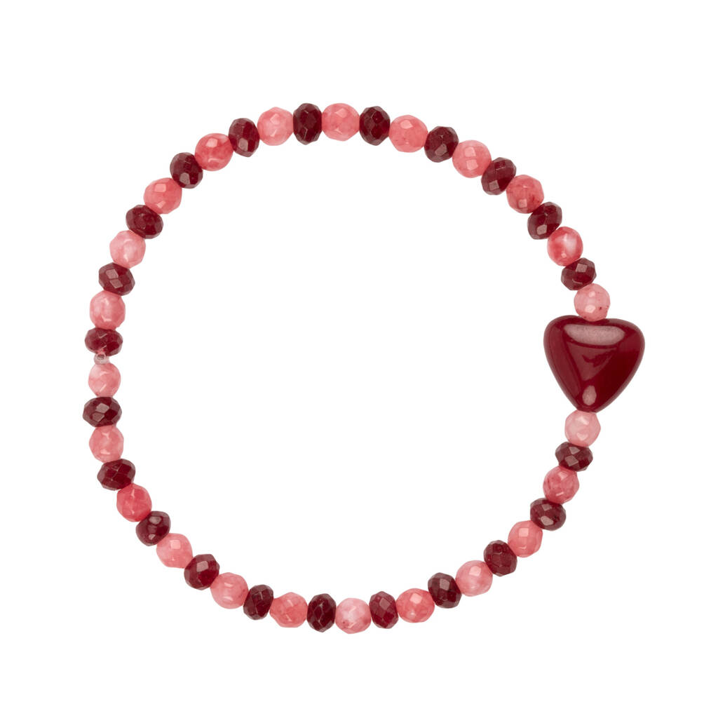 Made from 4mm pink and red Chalcedony beads and a 10mm red Chalcedony heart on a stretch cord.