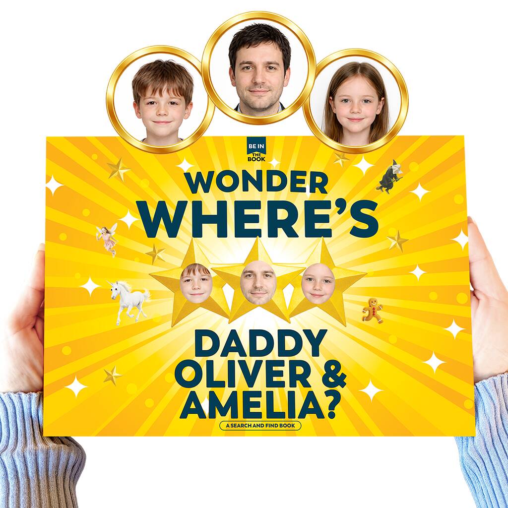 Personalised Dad Photo Gift Book 'Wonder Where’s Dad And Two Children?'