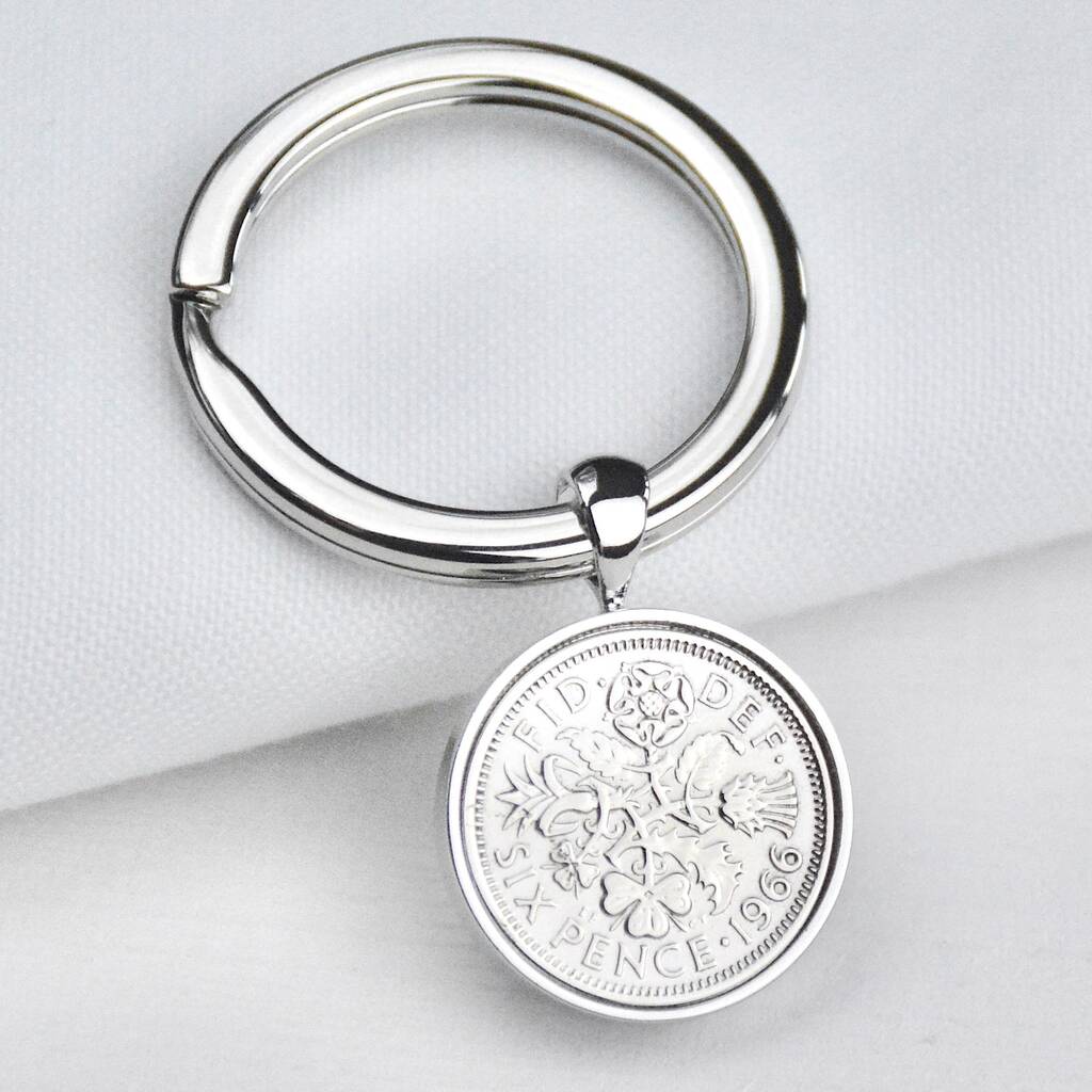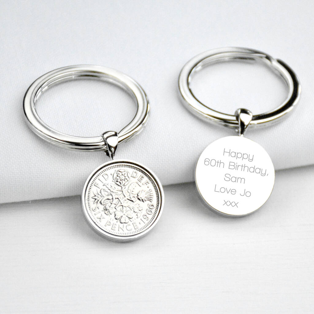 Luxury 60th Birthday Silver Sixpence Keyring
