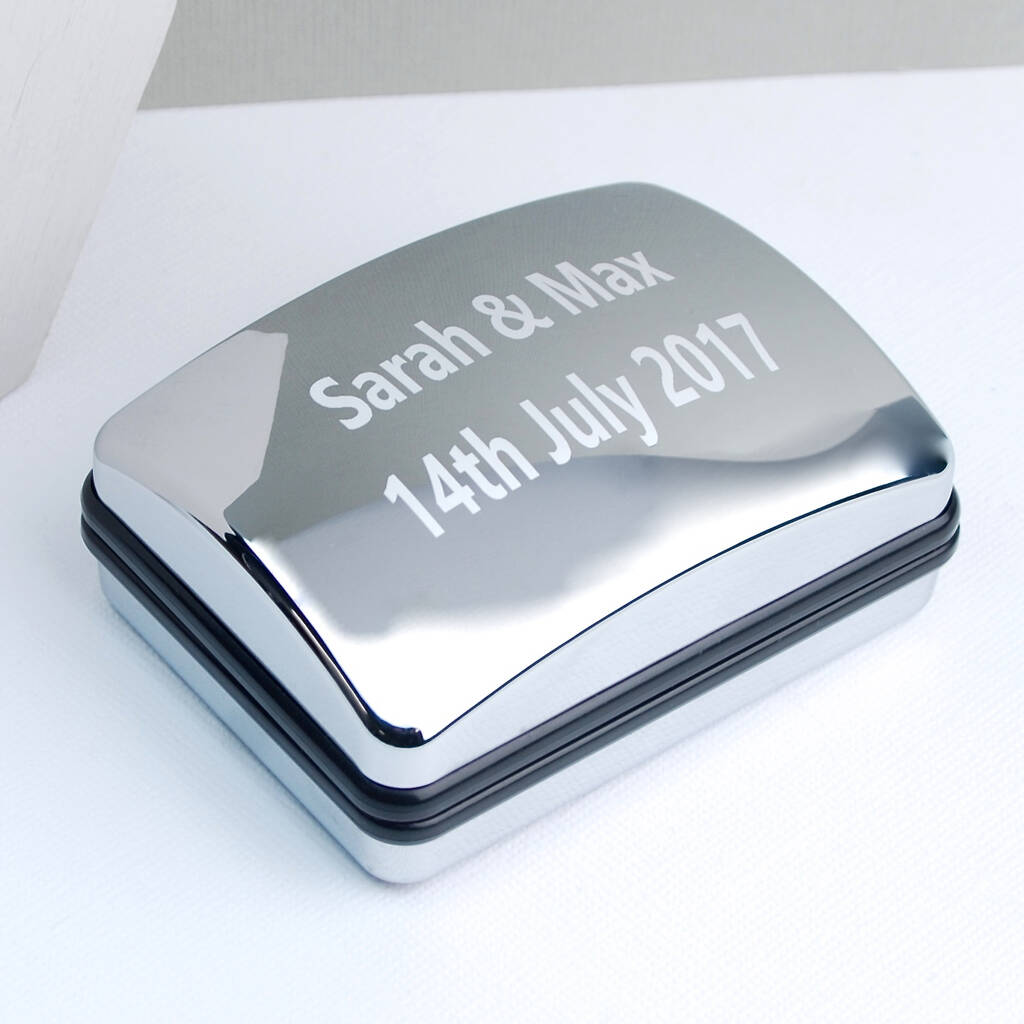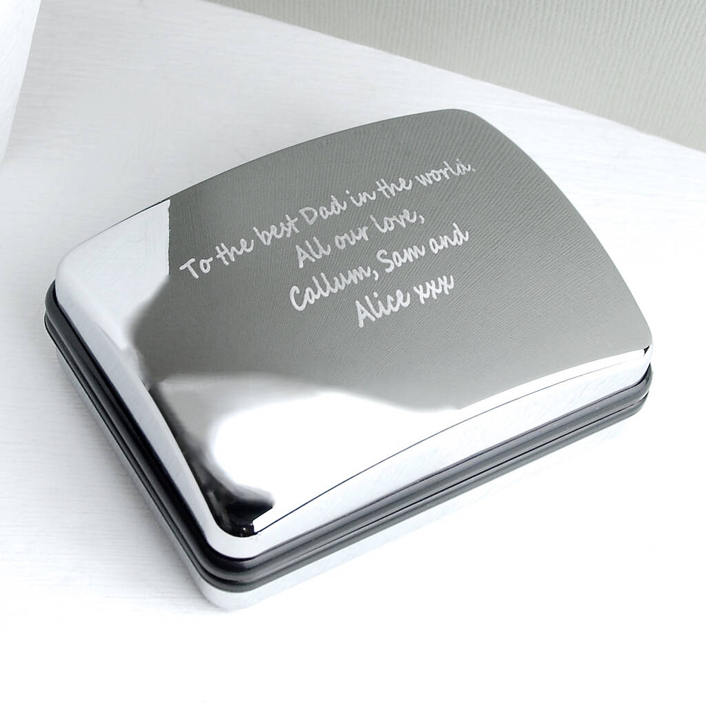 Beautifully engraved Personalised Chromed Cufflink Box, the perfect way to tell someone how special they are.