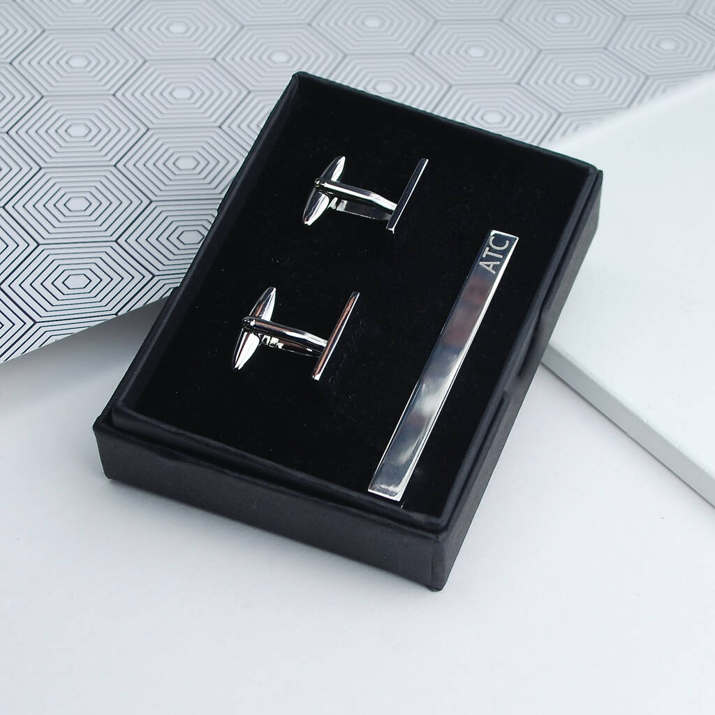 A personalised cufflinks and tie clip set - for those seeking a stylish gift for him or for the wedding party.