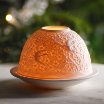 A stunning white porcelain domed tealight holder with cutout hole pattern in a lovely night fairies design.