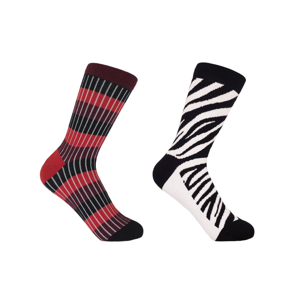 Chord Red And Zebra Black Women's Socks Bundle